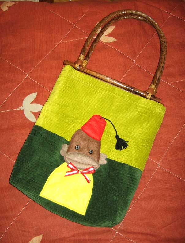 Apinan rusetti on suoraan Wienistä, hotelli Sacherin aulakahvilasta ostetun mini-sacher-tortun pakettikääreestä. Kakku piti ottaa mukaan, koska emme olleet pukeutuneet varsinaisen kahvilan sisäänpääsyyn oikeuttamalla tavalla. Turkoosi takki, raidallinen kaulaliina ja limenvihreä pipo olivat siis itävaltalaisille liikaa.
