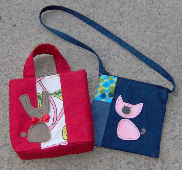 Pupu- ja possulaukku, malli omasta päästäPäällinen ja vuori puuvillaa, otukset huopaa ja muuta sälää