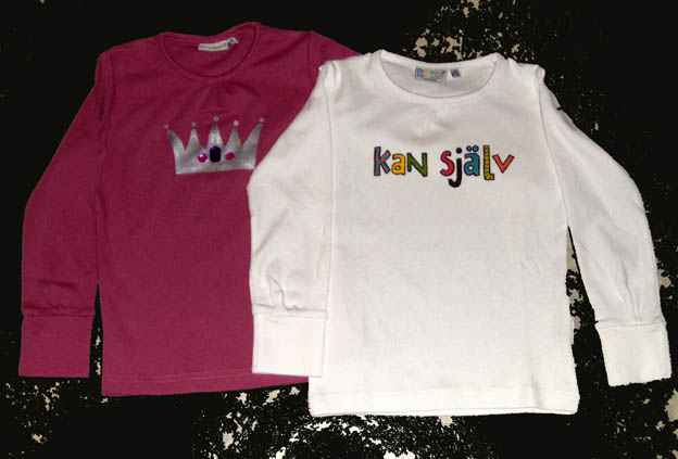 Our goddaughter turned two years. Wise and responsible as we are, we decided to give her a tool set including screwdriver and hammer. I also painted her two t-shirts: one for construction work and one for princess purposes. My guess was that all the kids are about one meter tall, which means that in terms of size she’s now well prepared for the future.