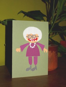 Minä suorastaan toivon, että olen mummona tuon näköinen (paitsi nutturalla). Kyllä tällaisillekin korteille on ihan selvä markkinarako, tosi hieno!