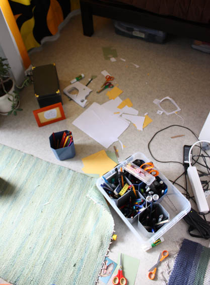 Iltapäivällä kummityttö tuli vielä kakulle, mutta kakku jäi lautaselle, kun leikkaaminen ja liimaaminen oli niin paljon mielenkiintoisempaa. Mutta luulen, että hänestä oli kaikkein hienointa saada Spiderman-laastari pientä paperihaavaa parantamaan.