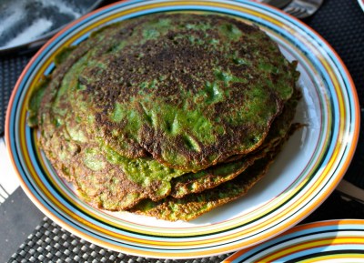 Pinaattiletut – mainioita. Taikina oli aika jöötiä, joten muutama lettu meni taikinaan tutustuessa, mutta kun intensiivisen vihreän massan kanssa tuli sinuiksi, johan alkoivat roiskaleet luonnistua. Letuissa oli tosi hyvä pinaatin maku ja parmesan-juusto sopi mielettömän hyvin lettujen kyytipojaksi. Miksi ihmeessä mieliimme on iskostunut, että puolukkahillo olisi ainoa oikea päällinen pinaattiletulle? Kova ja maukas juusto sopii lätyille vaan niin paljon paremmin. Tätä täytyy kokeilla keväällä nokkosilla.