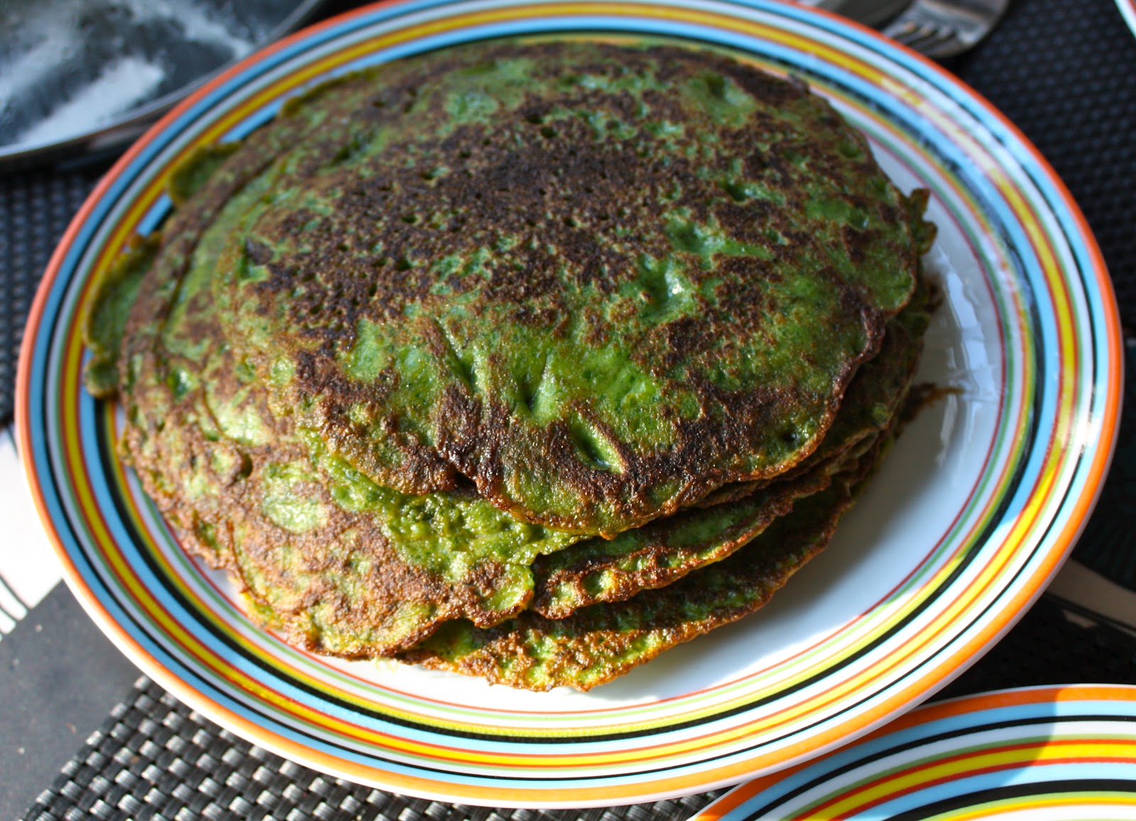 Pinaattiletut – mainioita. Taikina oli aika jöötiä, joten muutama lettu meni taikinaan tutustuessa, mutta kun intensiivisen vihreän massan kanssa tuli sinuiksi, johan alkoivat roiskaleet luonnistua. Letuissa oli tosi hyvä pinaatin maku ja parmesan-juusto sopi mielettömän hyvin lettujen kyytipojaksi. Miksi ihmeessä mieliimme on iskostunut, että puolukkahillo olisi ainoa oikea päällinen pinaattiletulle? Kova ja maukas juusto sopii lätyille vaan niin paljon paremmin. Tätä täytyy kokeilla keväällä nokkosilla.