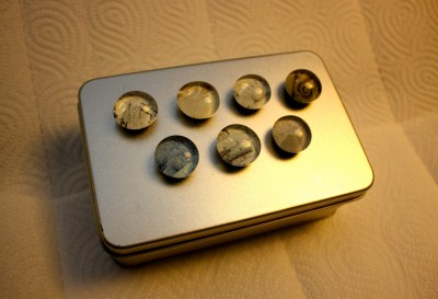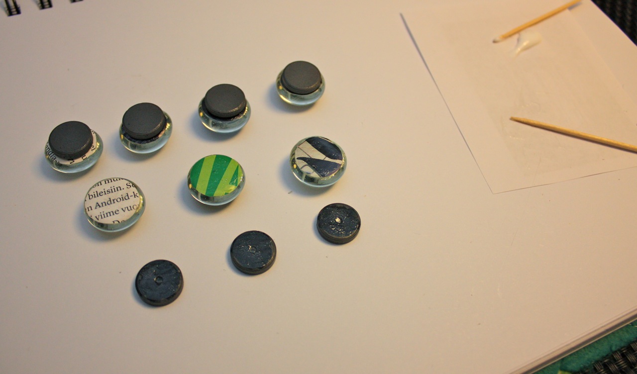 Levitä ohuen ohut kerros Erikeeperiä ympyräiseksi leikatun kuvan päälle. Paina Erikeeperöity kuva lasipisaran pohjaan. Anna kuivua vartti. Levitä kontaktiliimaa pisaraan liimatun kuvan taustapuolelle sekä magneetin toiselle puolelle (sille puolelle, missä on painauma keskellä – muuten magneetti hylkii jääkaapinovea). Anna kuivua vartti erillään ja paina sitten magneetin ja pisaran liimapinnat vastakkain. Anna kuivua yön yli.