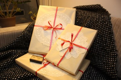Lahjojen paketointi aiheuttaa ainakin minulle päänvaivaa. Jotenkin se paperi aina ryttääntyy ja paketista tulee epämääräinen möhkäle vaikka lähtökohta olisi kuinka symmetrinen pakkaus tahansa. Tänä vuonna koitin tsempata pakettien kanssa.