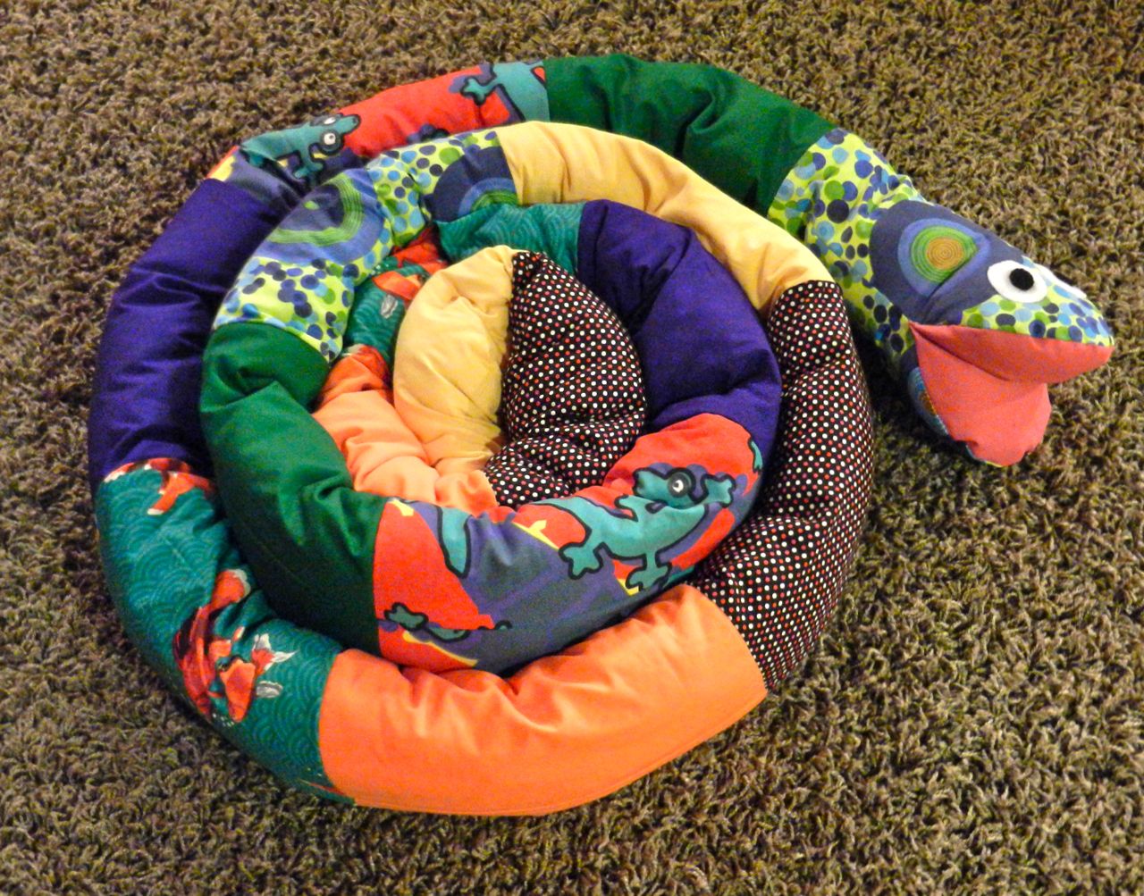 Viimevuotinen kärmes aiheutti 2-3-vuotiaissa lahjan saajissa sellaisia riemun kiljahduksia, että päätin uusiokäyttää idean tänä jouluna 2-3-vuotiaille veljenpojilleni. Tosin tällä kertaa käärmeestä tuli hieman kapeampi ja pidempi, yli kolmemetrinen.
