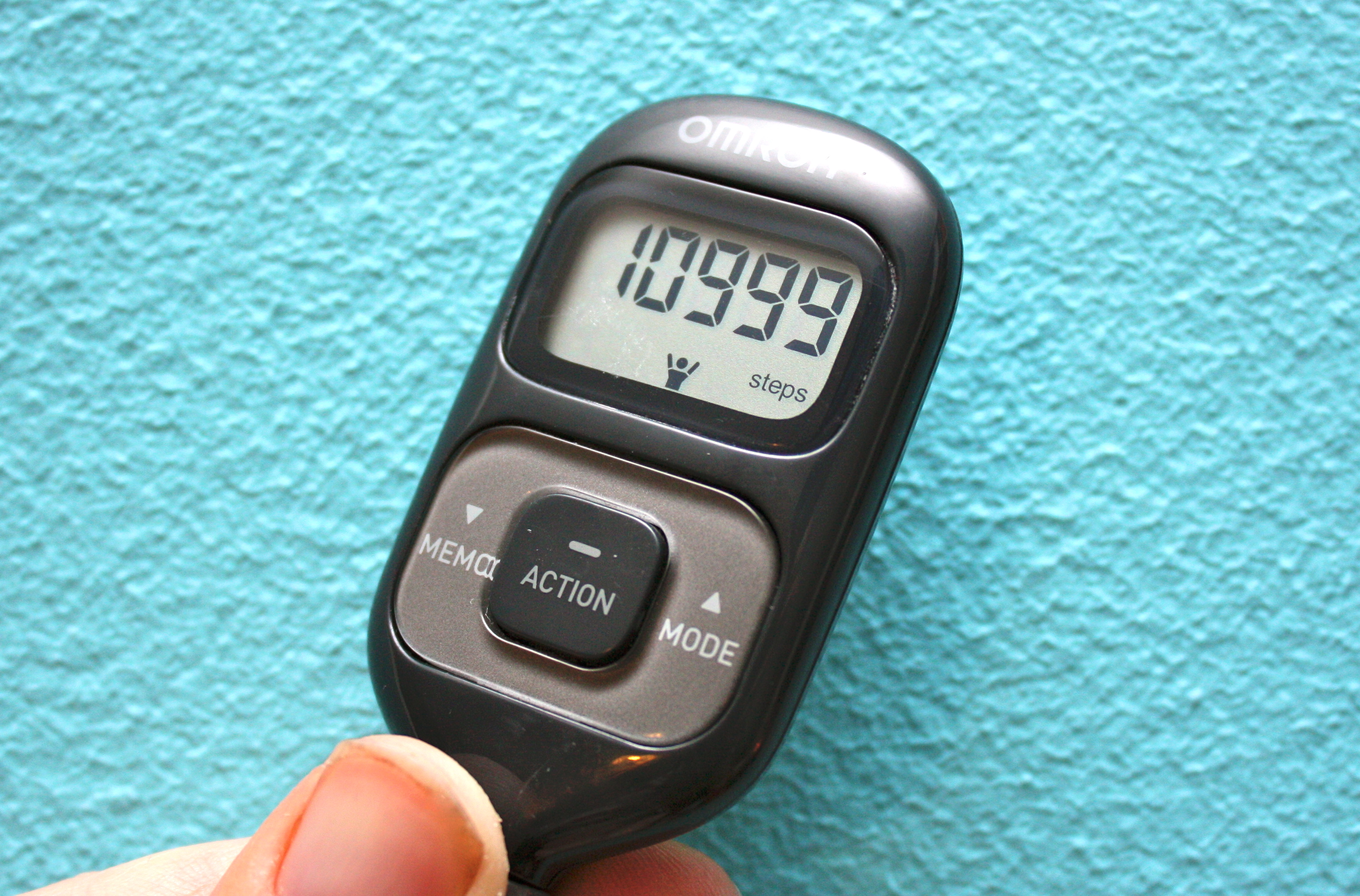 Sain joulupukilta toivomani askelmittarin. Tämmönen joku Omronin malli, jonka äitini on rankannut ja todennut markkinoiden parhaaksi useiden eri värkkien joukosta. Hänen mukaansa askelmittarien helmasynti on tilastoida vain joka toinen askel (jos siis mittaria pitää toisessa taskussa eikä keskellä esim. housujen vyötärönauhassa) ja jumauttaa mittaukset kävelytauon jälkeen (siis että liikkeelle lähtö vaati aina kunnon hypähdyksen, jotta laskuri alkaa taas seisahduksen jälkeen raksuttaa – älkää kysykö, millaisin empiirisin kokein hän on tämän selvittänyt). Tässä mittarissa ei siis tarvitse huolehtia näistä puutteista, vaan malli on meitin äitin hyväksymä. Ja positiiviseksi ominaisuudeksi nimettäköön myös pikku-ukko, joka tuulettaa, kun 10 000 askelta tulee täyteen.