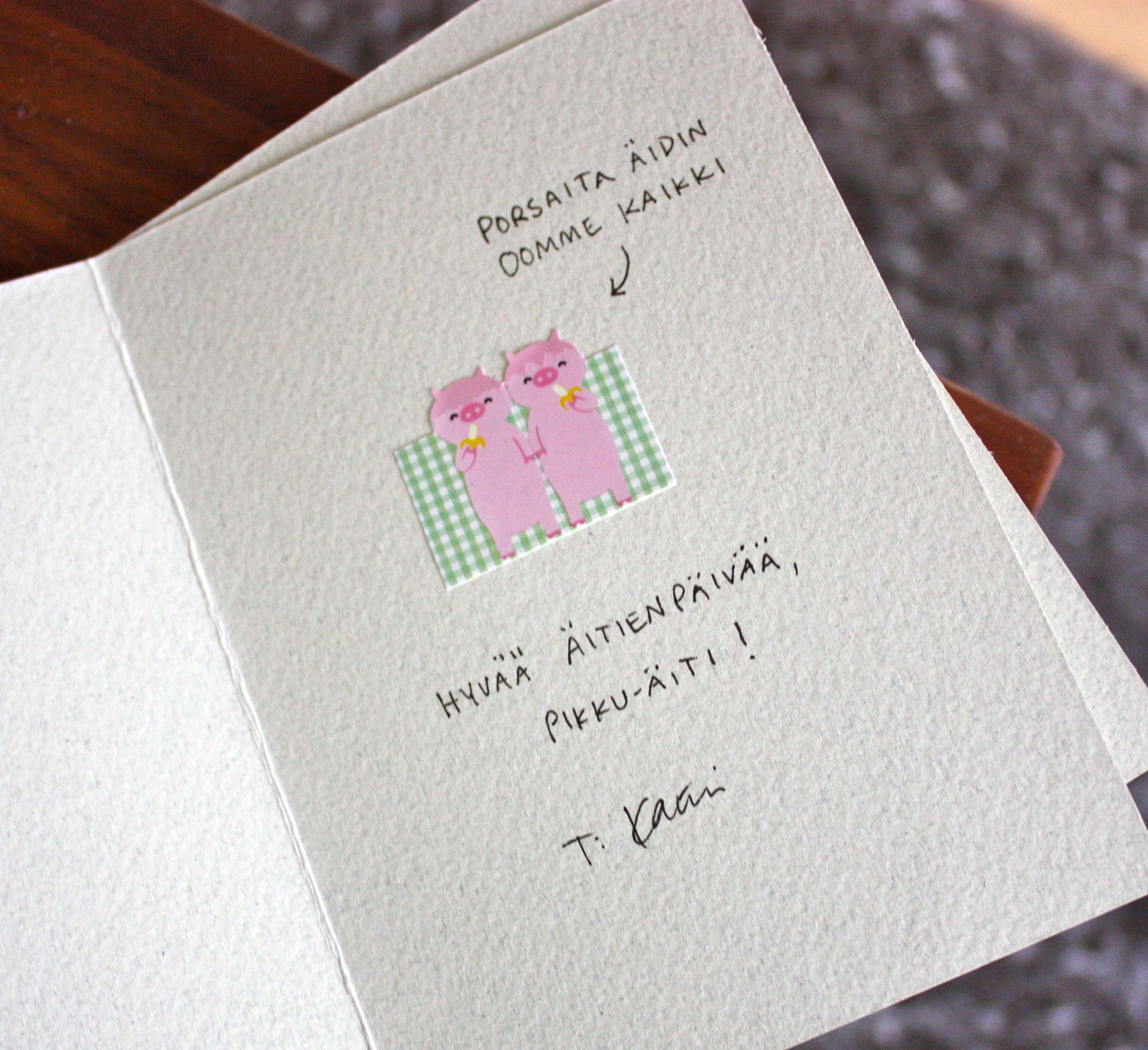 Hyvää äitienpäivän iltaa! Tänä vuonna korttiaskarteluni ei ehkä ollut maailman innovatiivisin (varsinkin kun siskoni asettaa vertailuriman aina melko korkealle), mutta ainakin postitusajoitus osui nappiin: sujautin äidin ja mummon kortit postiin jo keskiviikkona, ja muistin vieläpä kirjoittaa kuoreen ”priority”.