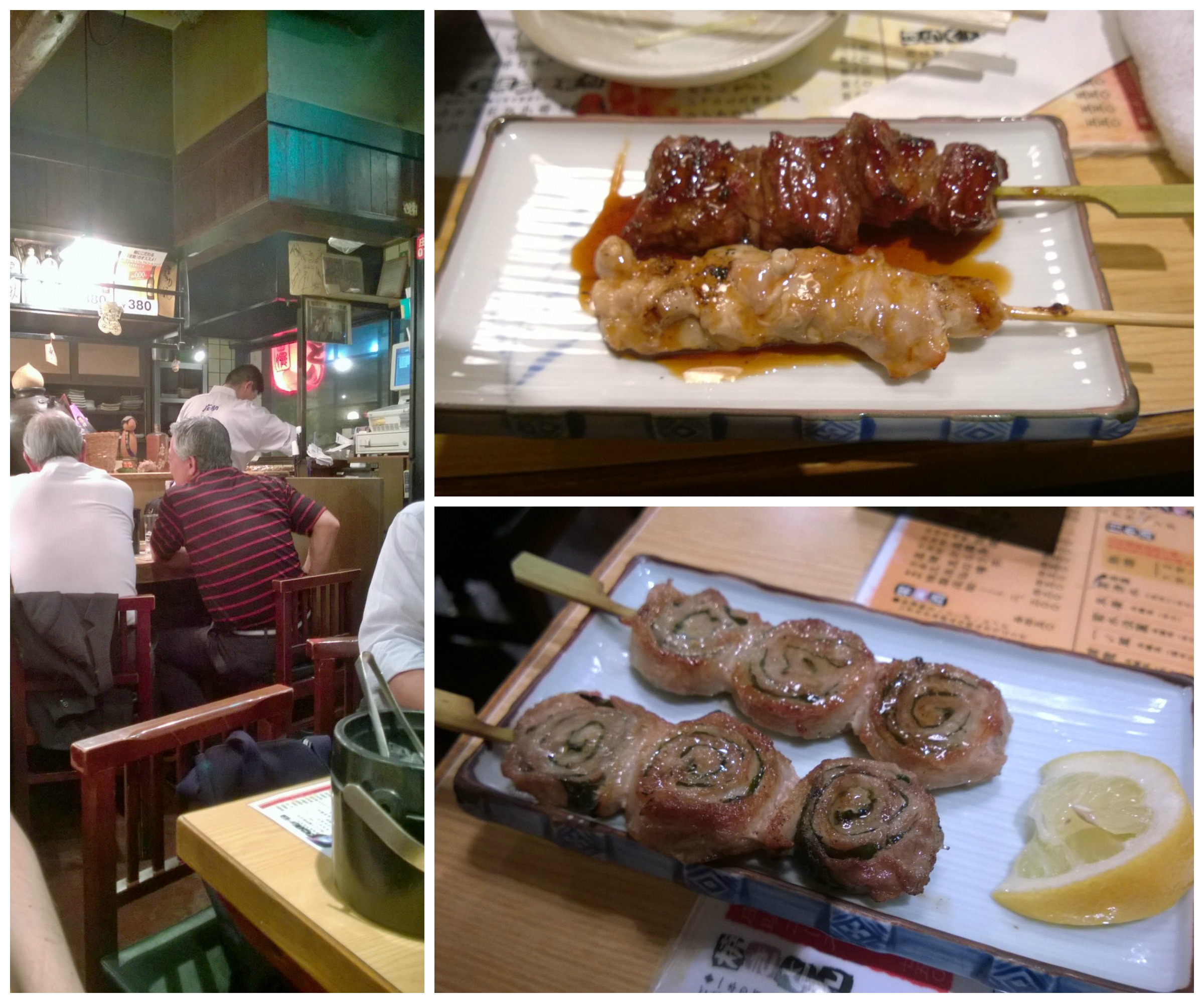 Etsiydyimme aina sellaisiin ravintoloihin, joissa oli paikallisia, joten uskon, että söimme aika lailla samanlaista ruokaa kuin japanilaiset itse. Yksi parhaista ruuista oli tosi vaatimattoman oloisessa kansankuppilassa, izakayassa, jossa istuimme vieri vieressä röökaavien ukkeleiden kanssa ja tarjoilija kantoi pöytään pikkuhiljaa milloin yakitori-vartaita, milloin salaattia.