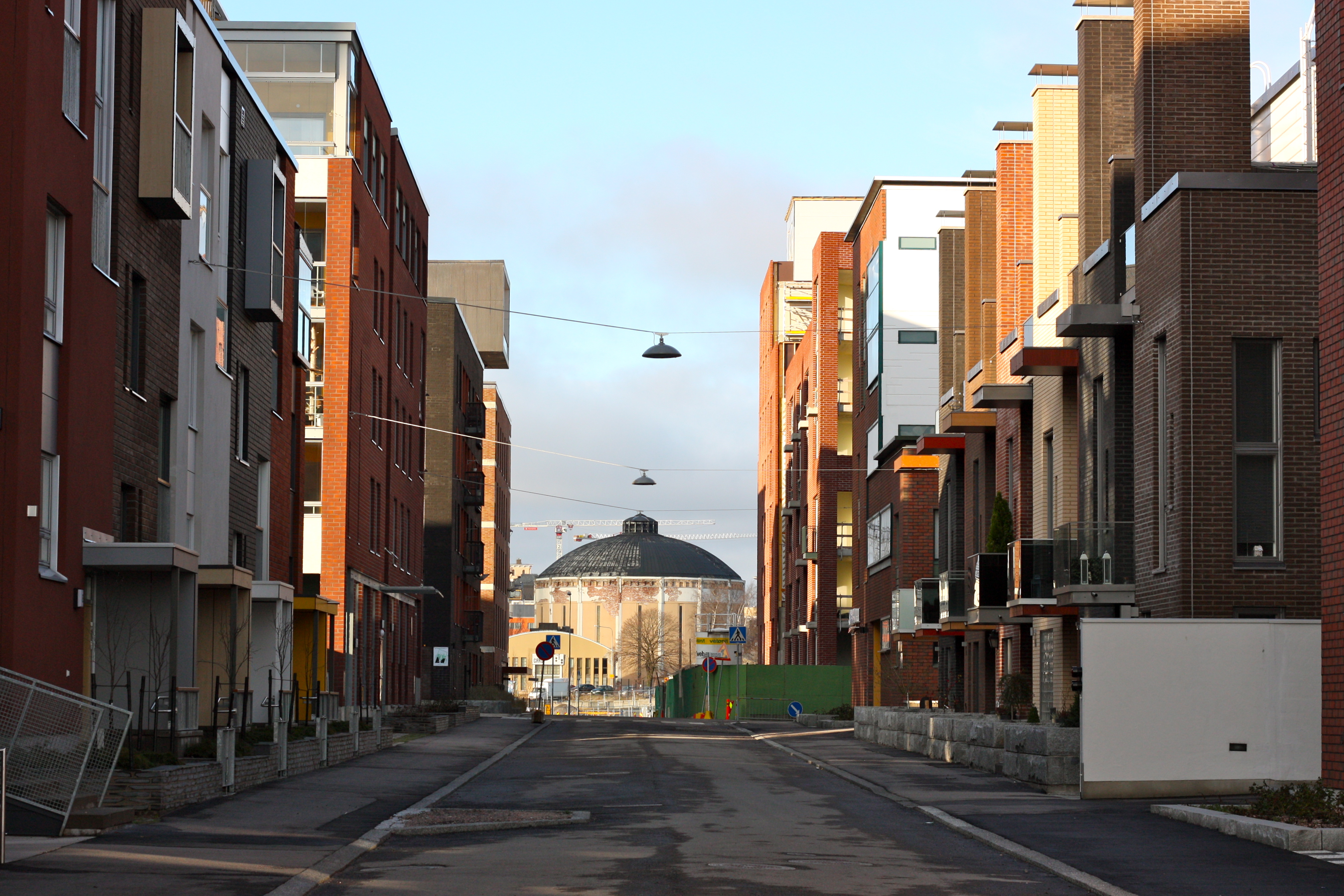 Täällä korttelit ovat tiiviitä ja pääasiallinen julkisivumateriaali on tiili. Parvekkeet ovat sisäänvedettyjä, eikä julkisivusta ulkona roikkuvia, pyöreillä pilareilla tuettuja lärpäkkeitä. Sisäpihat vaikuttavat kurkkimisen perusteella leikkisiltä. Naapurikortteliin nousee maailman paras tietomallinnuskohde.