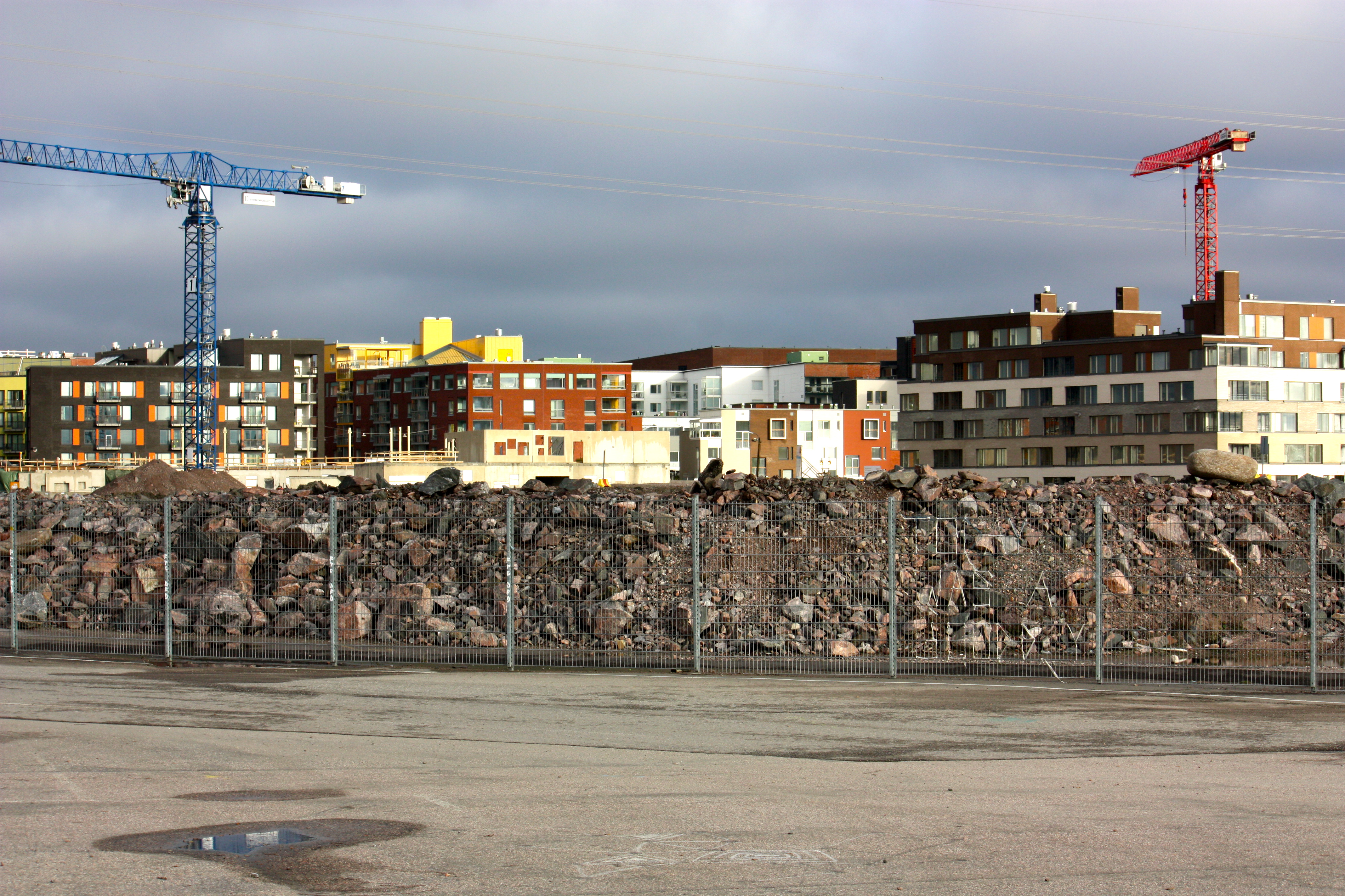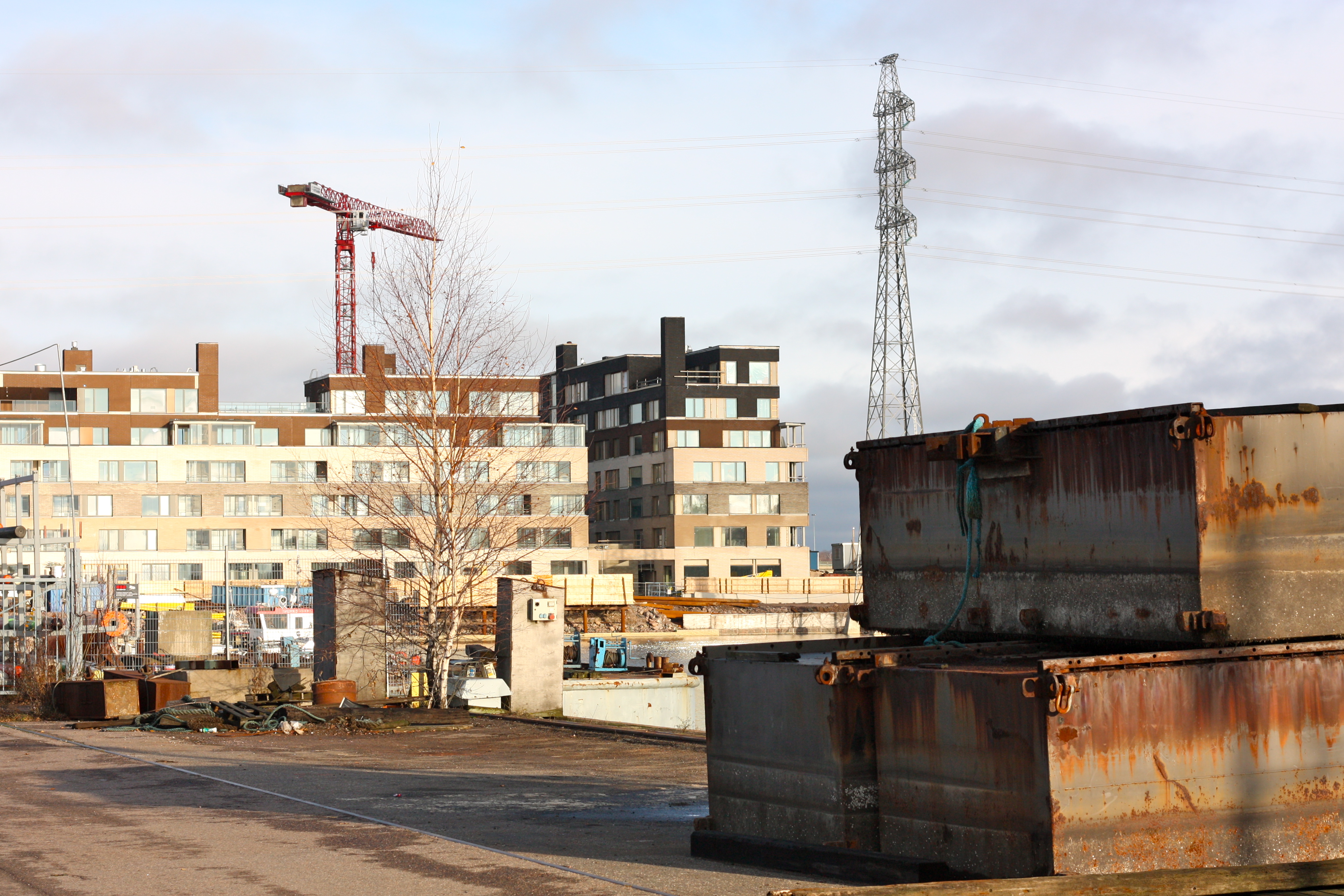 Tykkään suunnattomasti tämänhetkisestä maisemallisesta sekasotkusta, jossa yhdistyy vanha satama, joutomaa, sissimeinigillä muokattu kaupunkitila, väliaikaisuus, teollisuus, rakentaminen ja moderni asuinalue.