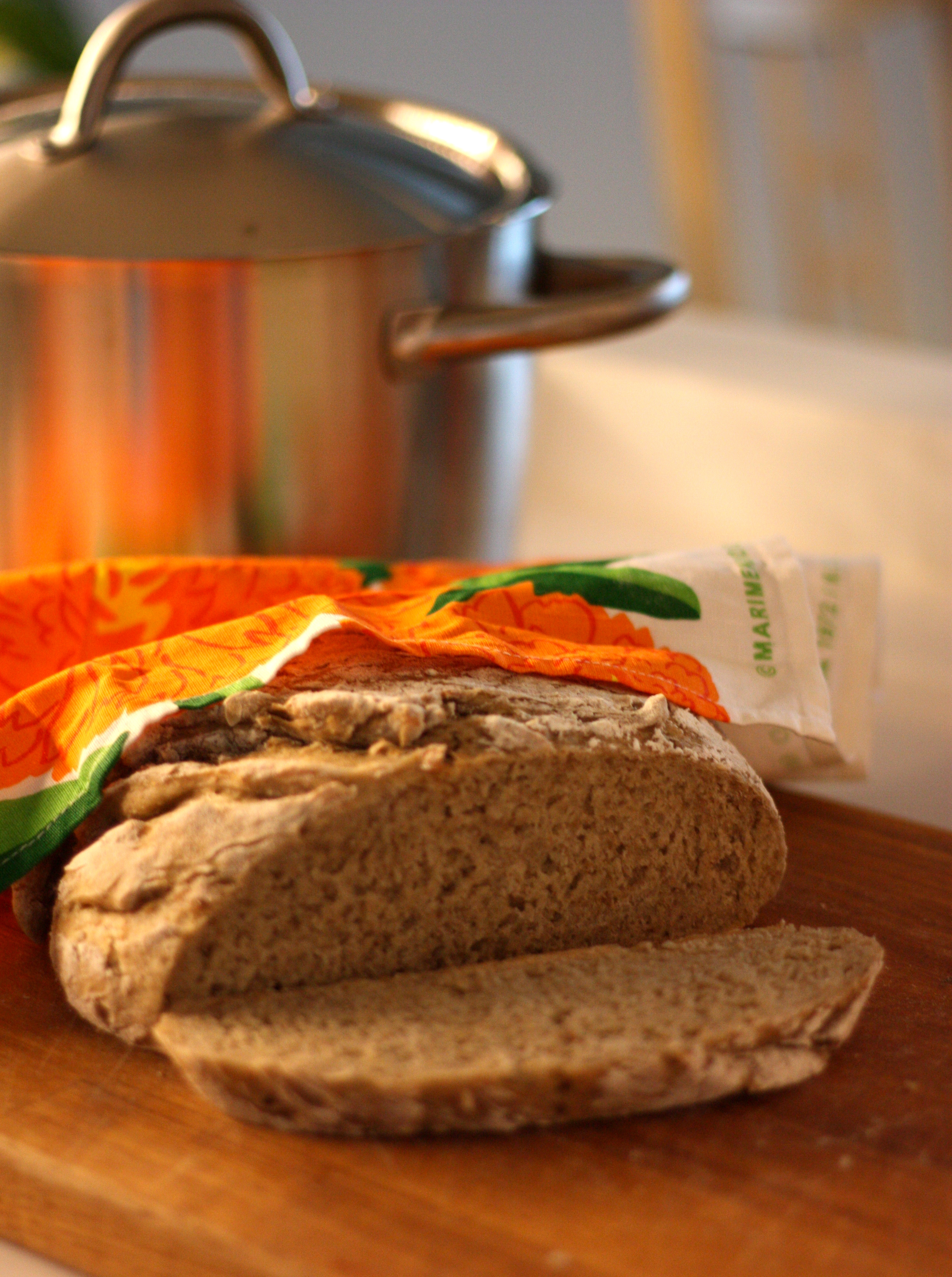 Leivän kuoresta tuli täydellisen rapsakka. Sydän jäi kyllä minun makuuni vähän höttöiseksi, sillä tykkään sitkoisemmasta leivästä. Ehkä ensi kerralla vaivaan taikinaa, vaikka monet ohjeet nimenomaan käskevät olla vaivaamatta. Ja jos oikein heittäydyn hifiksi, niin saatanpa tehdä jonkin kokeilun taikinajuurellani.