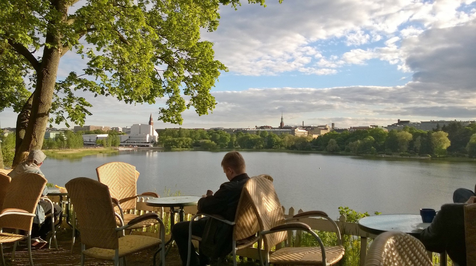 Kunnon kaupunkilaisena hommasin fillarin muutama viikko sitten, ja nyt on sitten poljettu lähes joka päivä joko töihin tai ilta-sightseeingiä. Useampi iltatsygäily on kulkenut Sinisen Huvilan Kahvilan kautta. Pihakahvilan pöydistä aukeaa huikean hieno näkymä Töölönlahdelle: Finlandia-talo, Kansallismuseo, Ooppera… Ja aukioloajatkin ovat suotuisat – iltakymmeneen saakka!