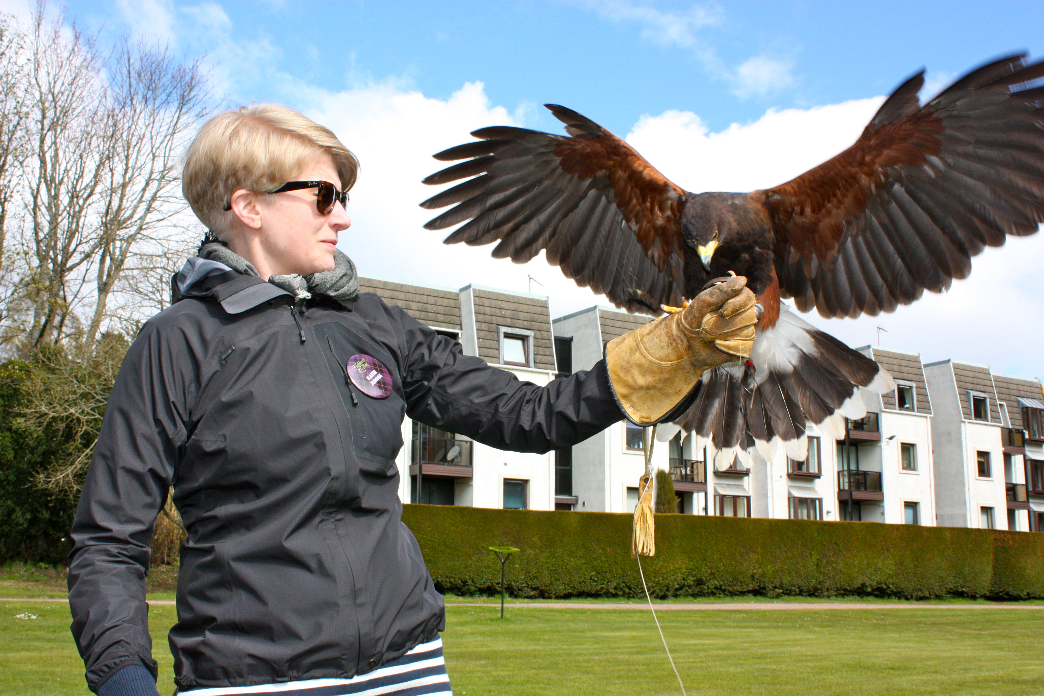 Gleneaglesissa koulutetaan metsästyshaukkoja ja -kotkia. Pienemmillä petolinnuilla voi metsästää jäniksiä ynnä muuta pienriistaa, isompi kotka päästää päiviltään pienen peurankin. Kuulemma periaatteessa minkä tahansa petolinnun voi kouluttaa metsästyslinnuksi, tosin toiset ovat metsästykseen soveltuvaisempia kuin toiset. Haaskalinnut ovat kuulemma huonompia. Lintu jaksaa retuuttaa takaisin metsästäjälle saaliin, joka on noin puolet sen omasta painosta.