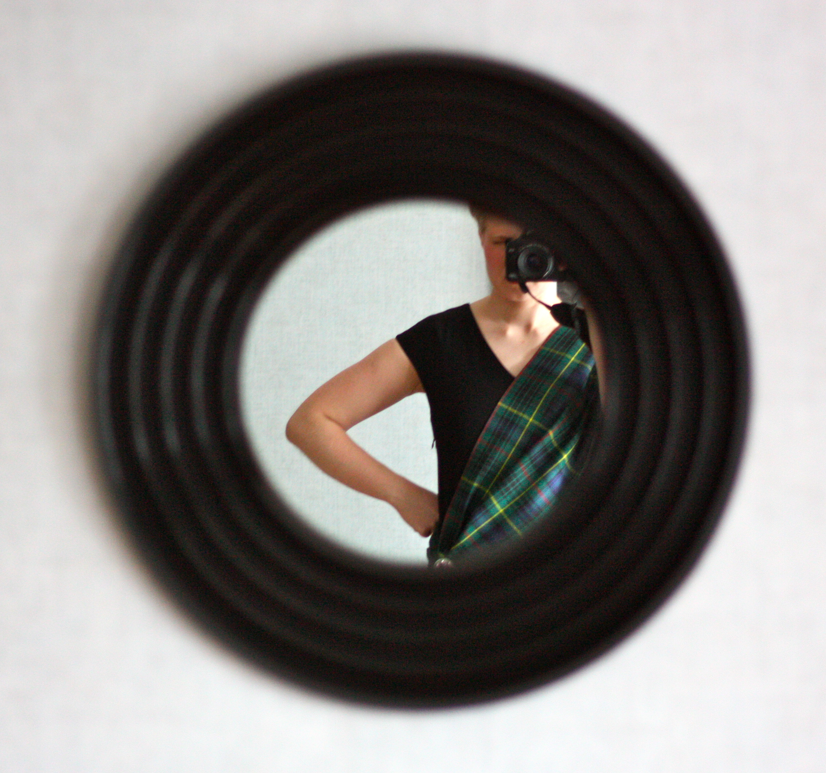 Ohjelmaan kuului juhlaillallinen, jonka pukukoodina oli kiltti. Kiitos teekkariaikojen, tiedän kyllä, mitä naisen kuuluu pukea, oli miesten pukukoodina sitten frakki tai tumma puku, mutta kiltin kanssa meinasi tulla tenkkapoo. Pakkasin varman päälle, siis mustan olkapäät peittävän, puoleen sääreen yltävän mekon. Se osoittautuikin nappivalinnaksi. Lisäksi sain lainaan toisen olkapään yli kiepautettavan, soljella kiinnitettävän tartanin. En sentään joutunut tanssimaan Highland Flingia.