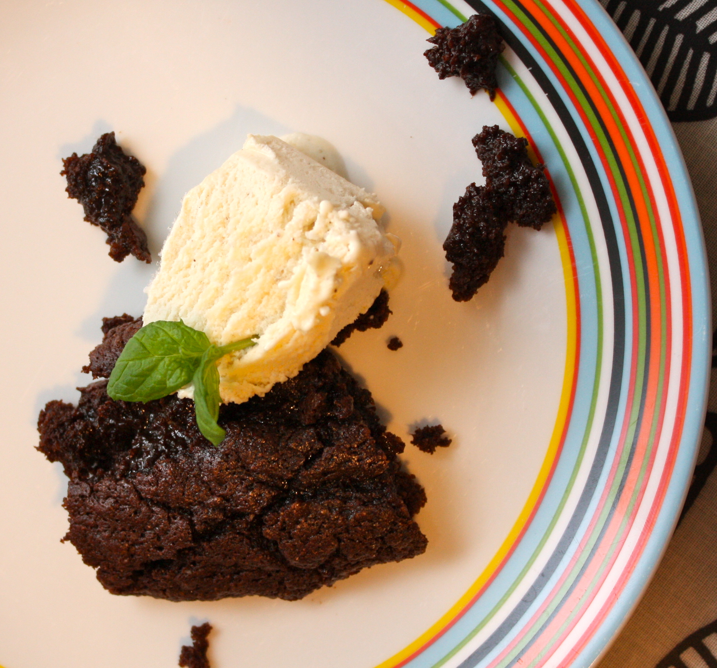 Nyt löytyi mutakakun resepti, joka on ehtaa tavaraa. Sopivan suklaista, ei liian makeaa, ja vieläpä superhelppo ja nopea tehdä. Kakku on vehnätön, vaikkakaan ei gluteeniton. Ohje on varioitu Team Skyn Velochef-keittokirjasta – alunperin resepti oli 6 suklaa fondantiin, mutta totesimme kotikeittiössä, että tämä on mehevämpää yhdestä kakkuvuoasta nautittuna.
