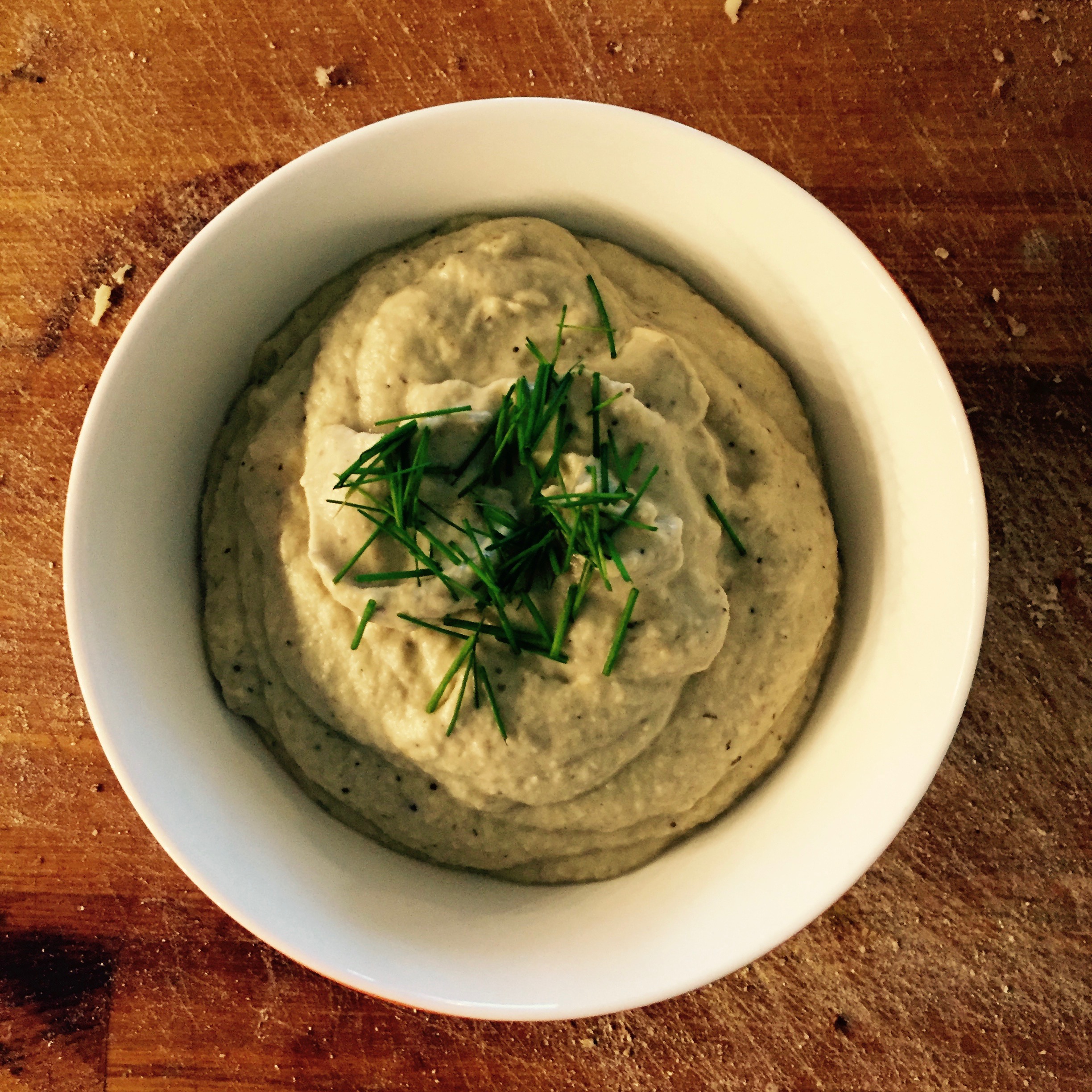 Heitä tuorejuusto tai feta kaavitun munakoison sekaan ja surauta sileäksi sauvasekoittimella. Mikäli käytit tuorejuustoa, tsekkaa tässä kohtaa suola ja lisää tarvittaessa. Raikasta mössö lorauksella sitruunamehua.
